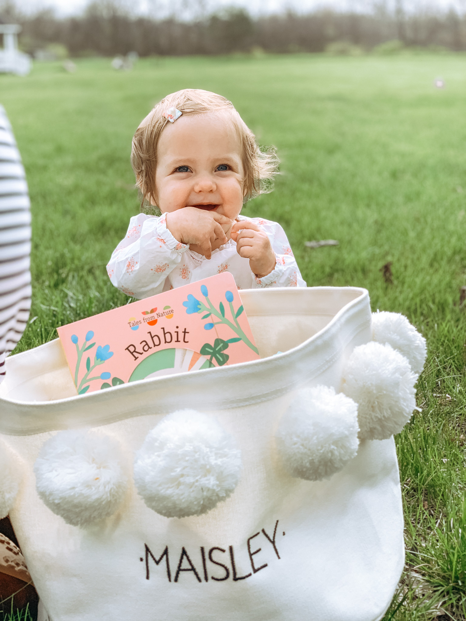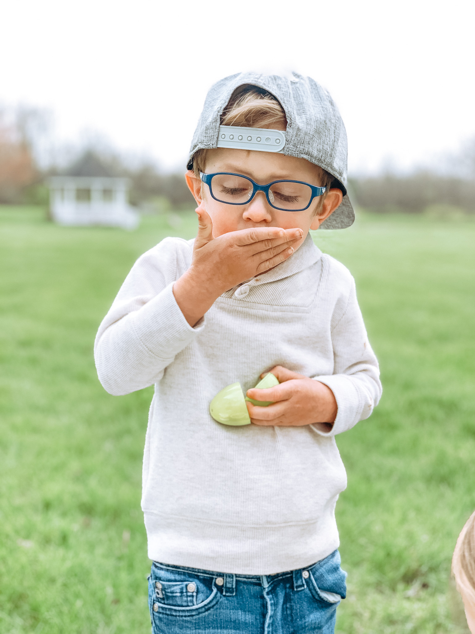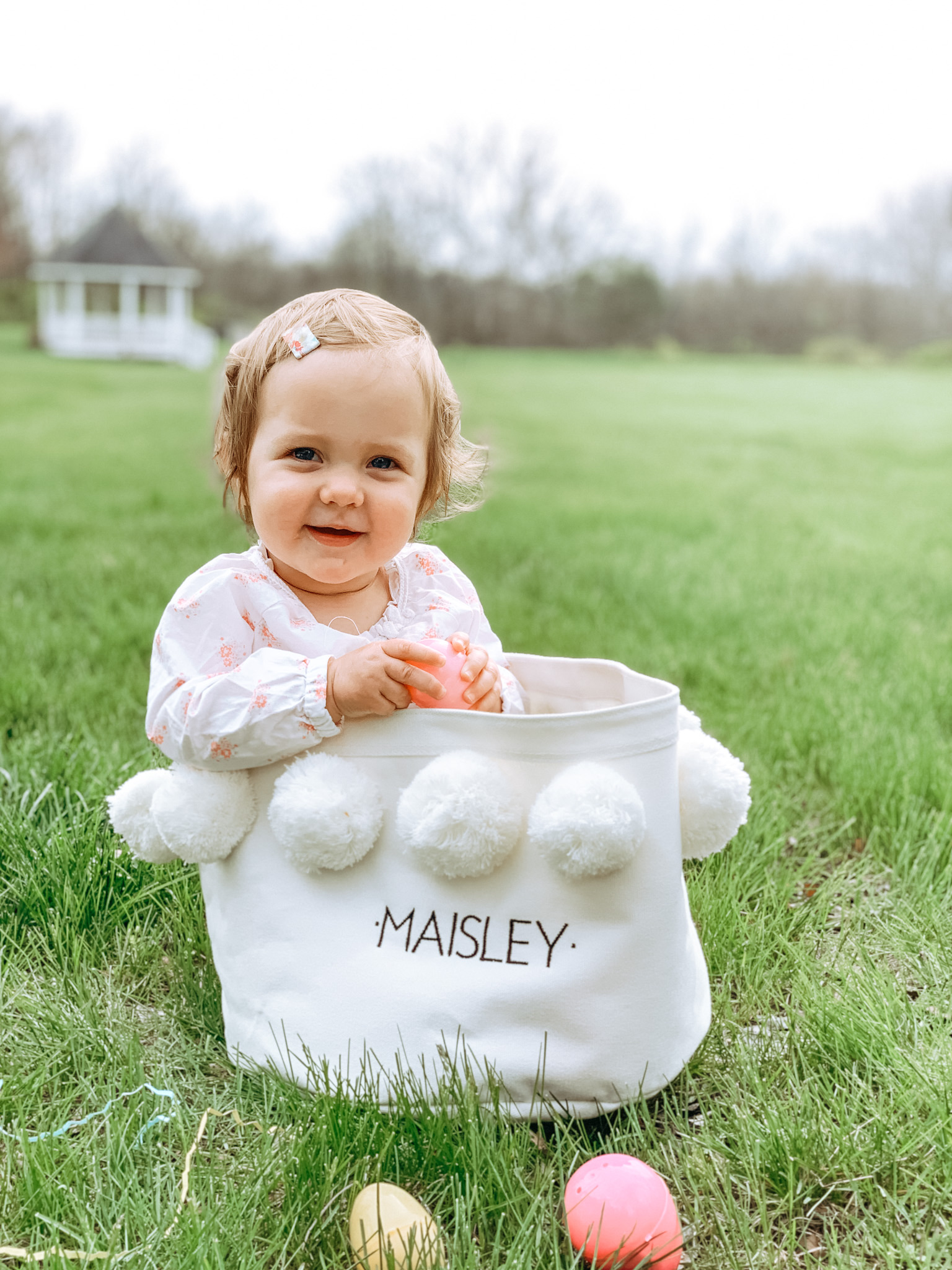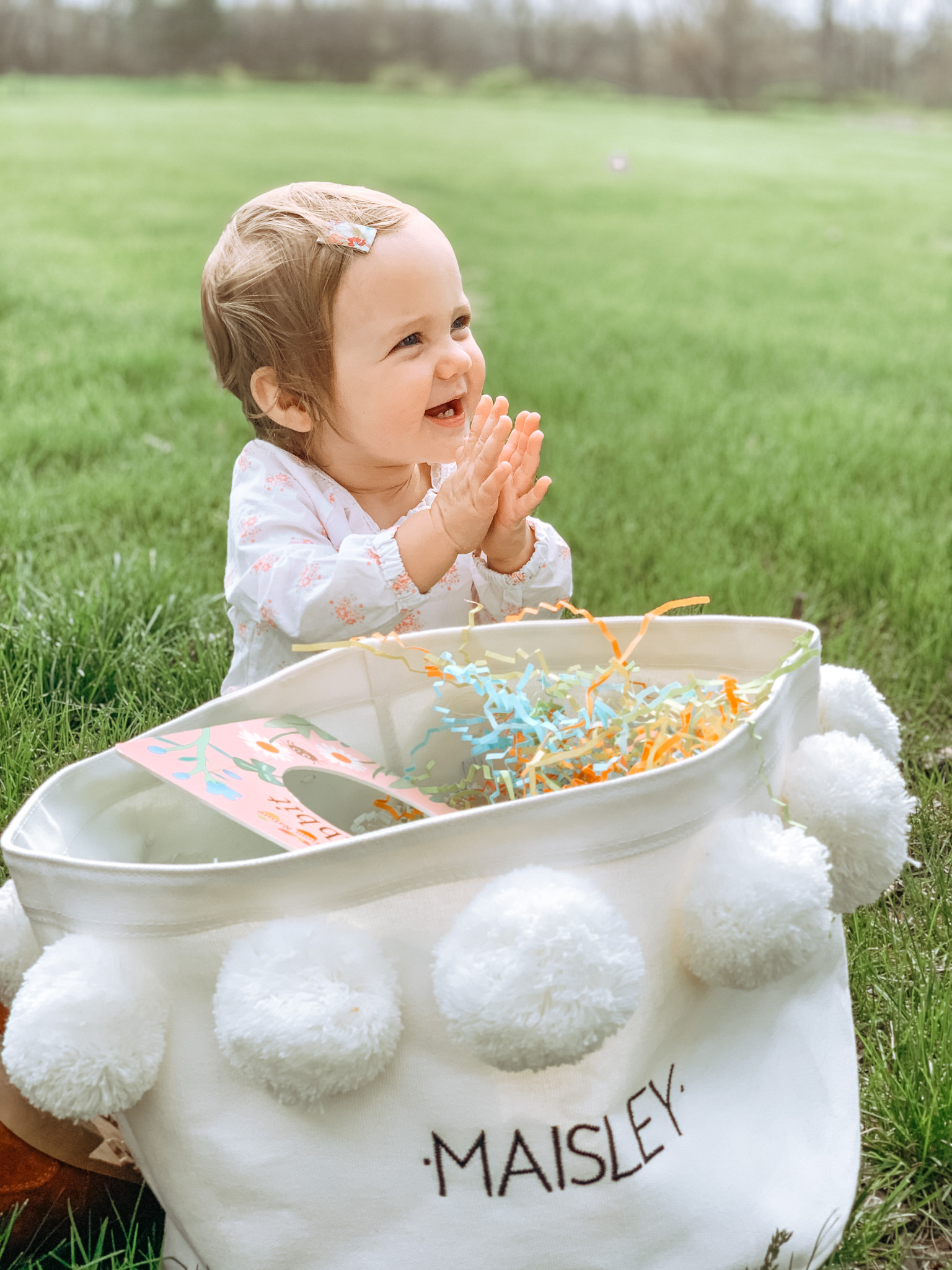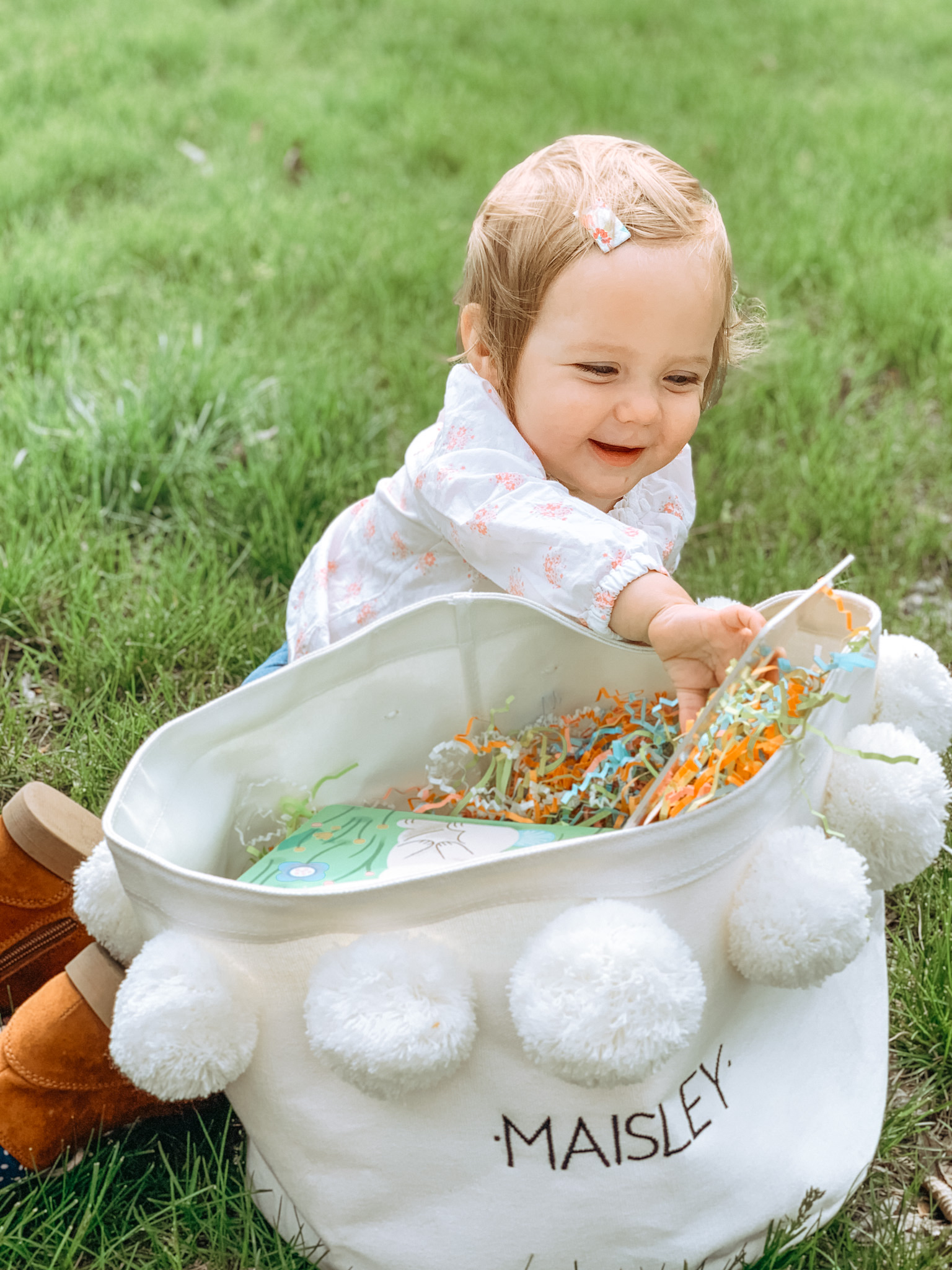 we woke the kids up from nap on saturday after much debate…the weather was supposed to be cold + raining all day sunday so we opted to quickly hide a few eggs and the baskets and it was such fun! it actually worked out great so that sunday was extremely low key and easy!