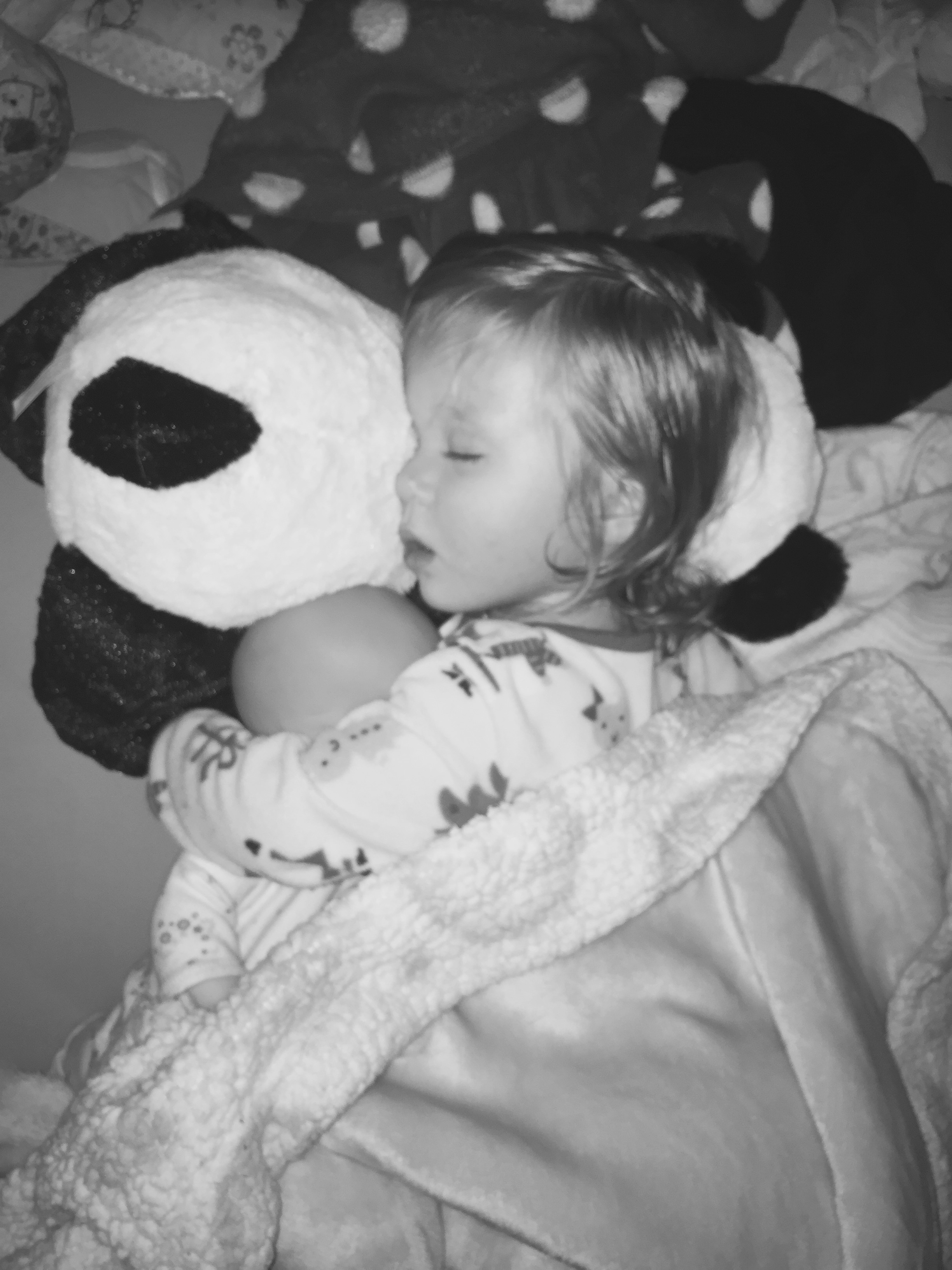 i snuck into the girls room the other night to give them lovies before i crawled under and my heart simply exploded when i saw my big girls snuggled so sweet. mammaw had brought over a surprise panda that pappaw had picked out for them and they have been attached ever since.. throwing an absolute fit if their new ‘teddy’ doesn’t make it into their crib with their ‘baby’. so there they were, snuggled up tight, ducky with her baby while sleeping on her teddy and lila snuggled up as well. every time i don’t think they could get any cuter…sheesh.
